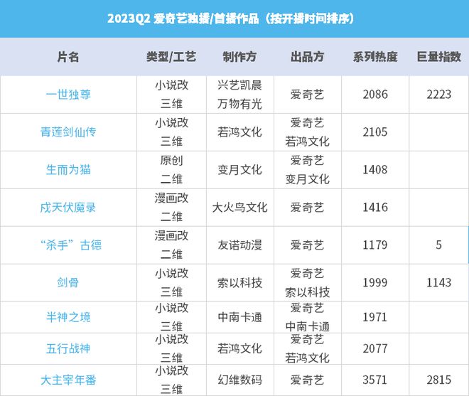 爱奇艺为暑期档绸缪了一波产生。二季度开播的动画中有6部小说改(均为三维)、2部漫画改和1部原创动画(均为二维动画),最常睹的标签是玄幻◆、热血、冒险。学术趴此前也撰文先容过爱奇艺的暑期动画。
