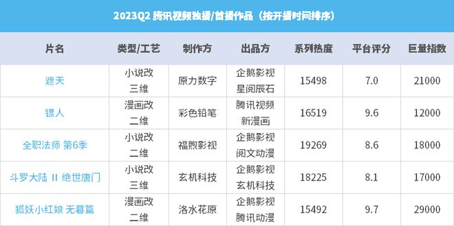 腾讯视频本季度上新5部独播动画2023年过半说个合于动画的“坏,均为结合出品,此中三维·小说改占3部,二维·漫画改占2部。